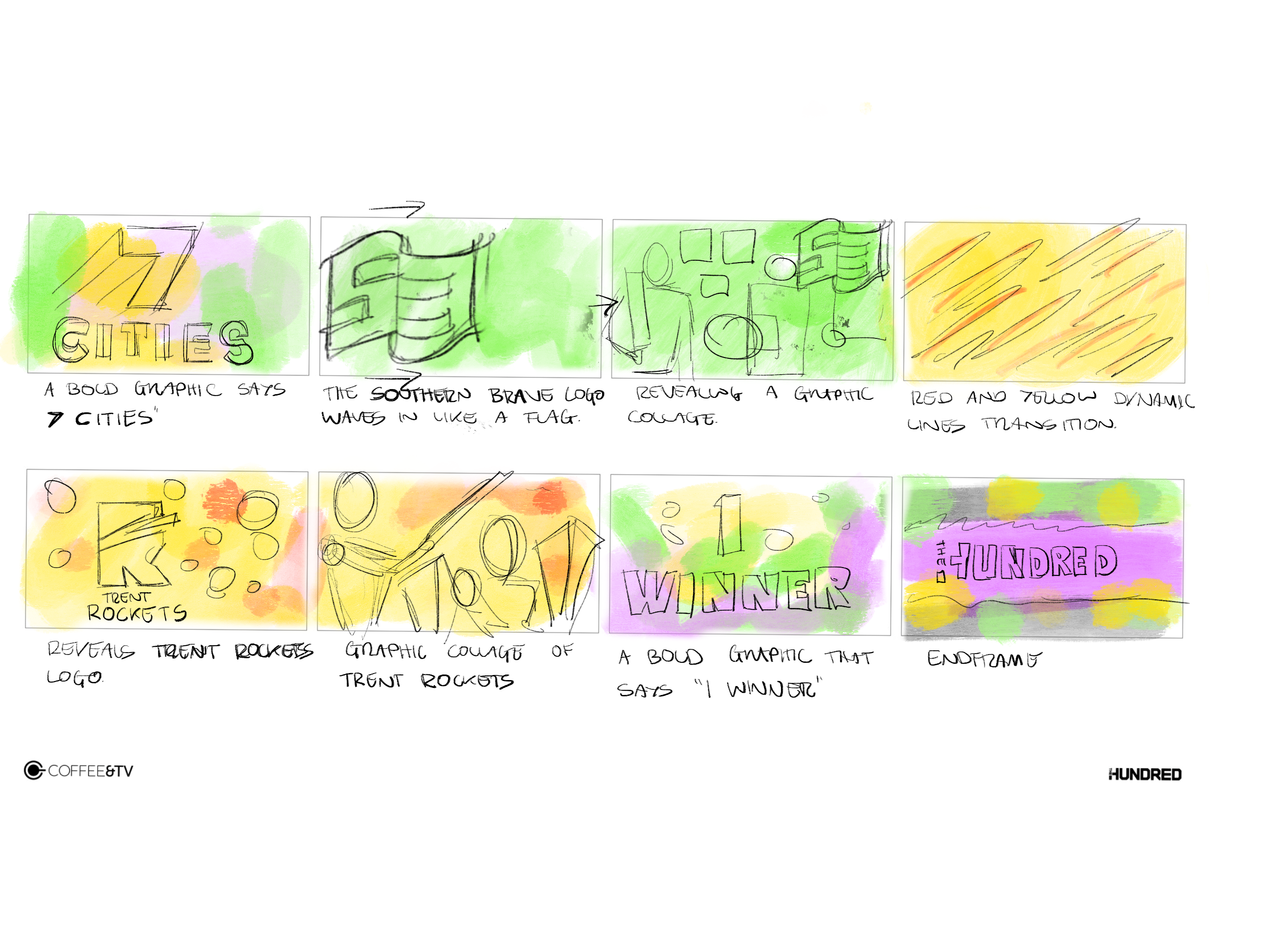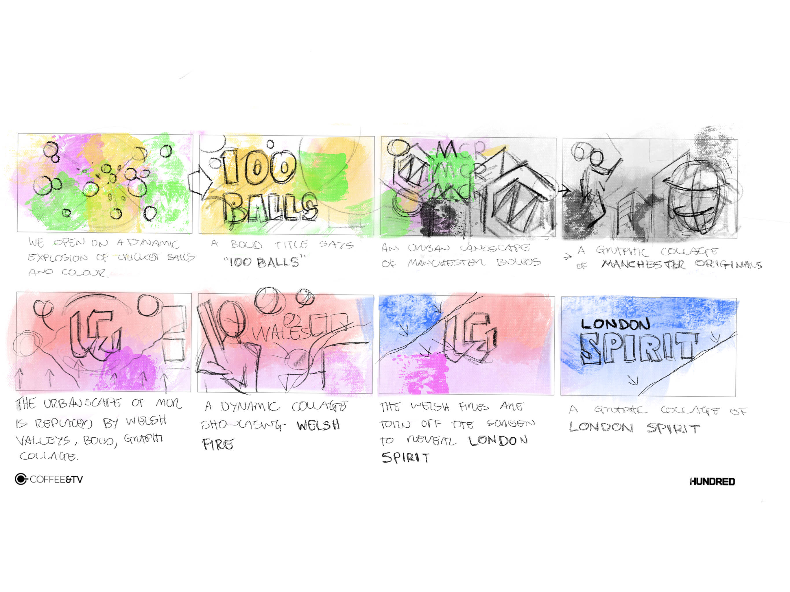Coffee & TV’s Animation Directors ekdmotion (Ed Kevill-Davies) and Daisy Loader were commissioned by BBC Sport to design and create the visual identity and title sequence for the BBC coverage of The Hundred 2021 cricket fixtures. The professional franchise 100-ball cricket tournament, involved eight men’s and women’s teams from the UK’s biggest cities.