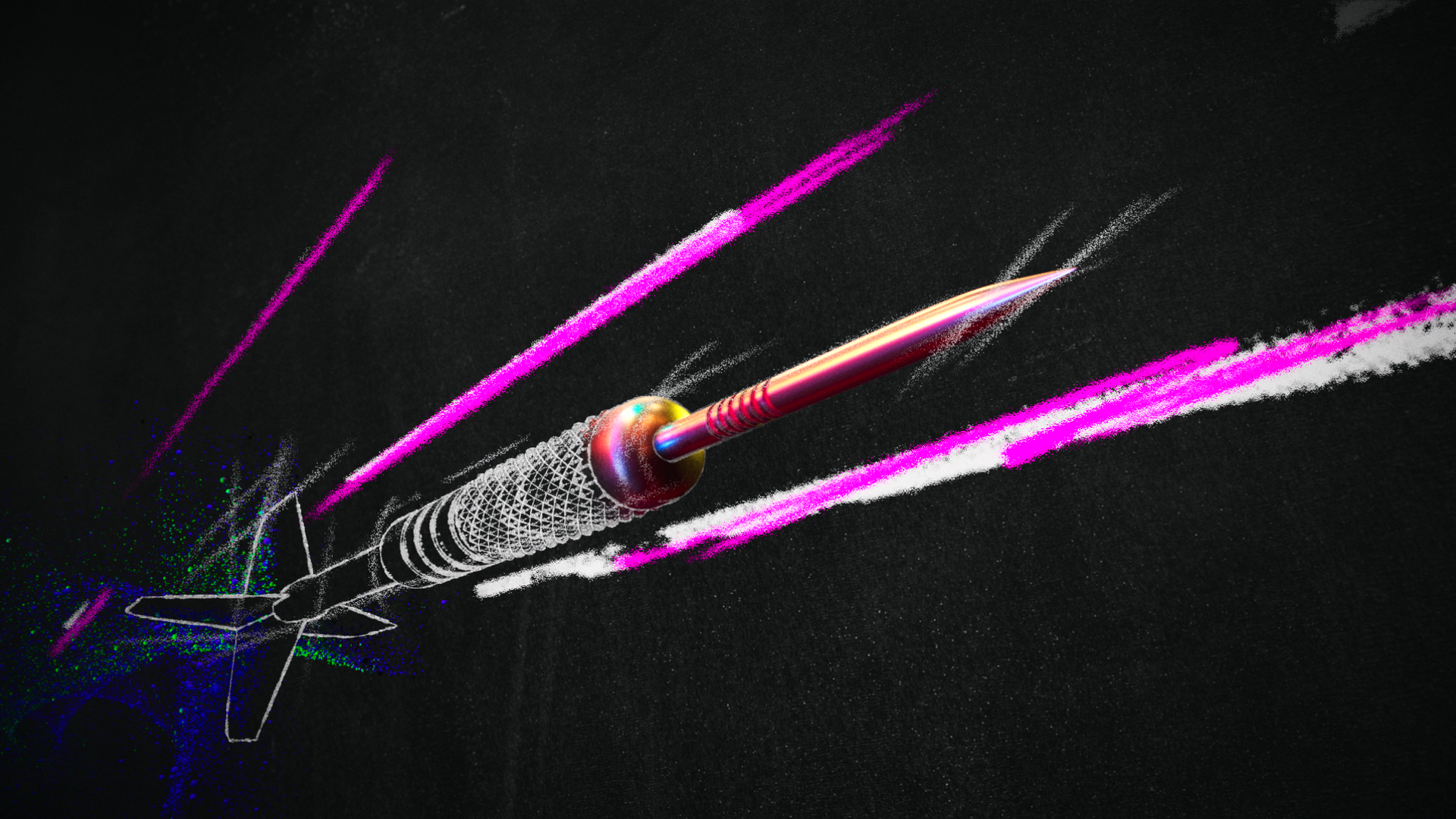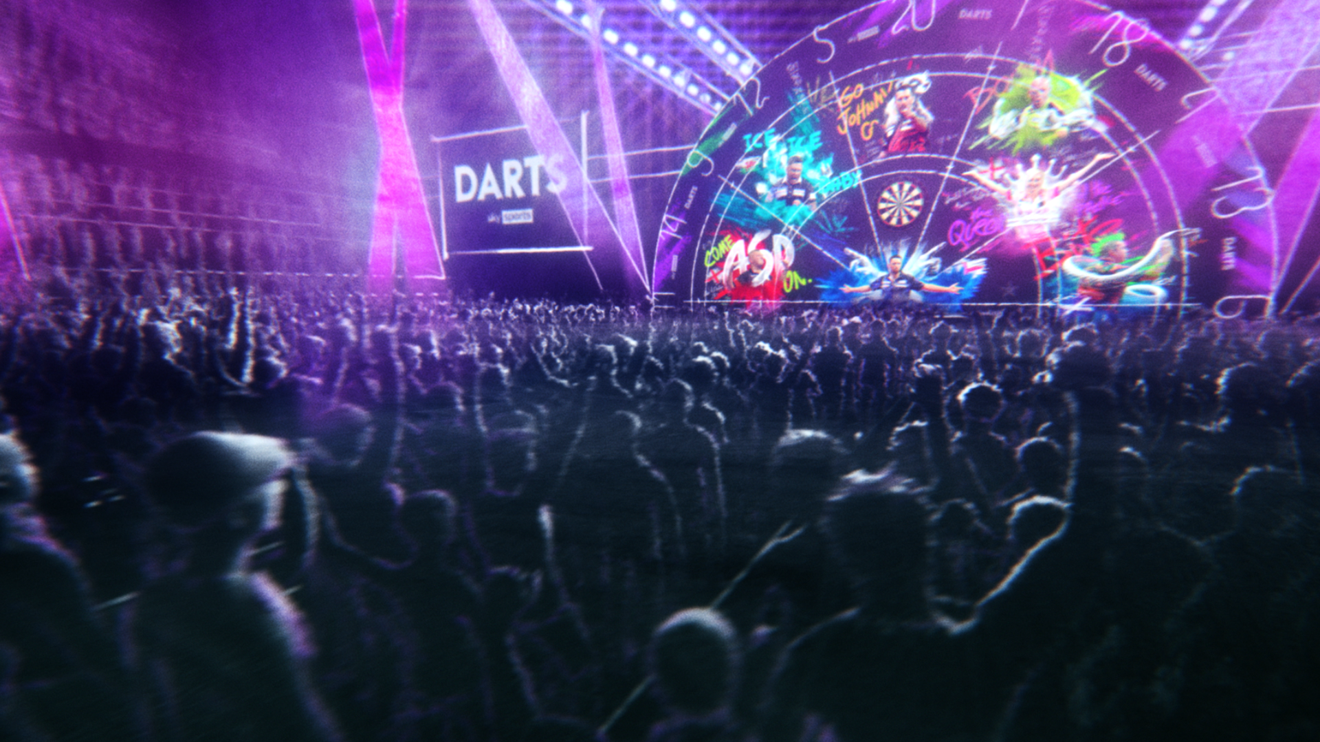 Led by designers Danny Boyle and Ed Kevill-Davies the team harnessed a chalk-like aesthetic that showed the journey from grass roots dartboard to iconic stadium dartboard. Each dart player's unique personality was brought to life with illustration and colourful clouds of smoke.