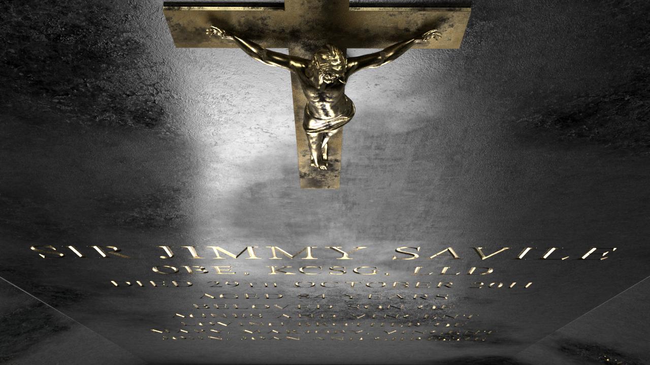Rowan tasked Steve and Danny to build the sequence’s narrative around Savile’s gravestone and detailed epitaph. The gravestone and its destruction was recreated in CG so it could be used as a metaphor to depict the scale and nature of Savile's betrayal of a nation.